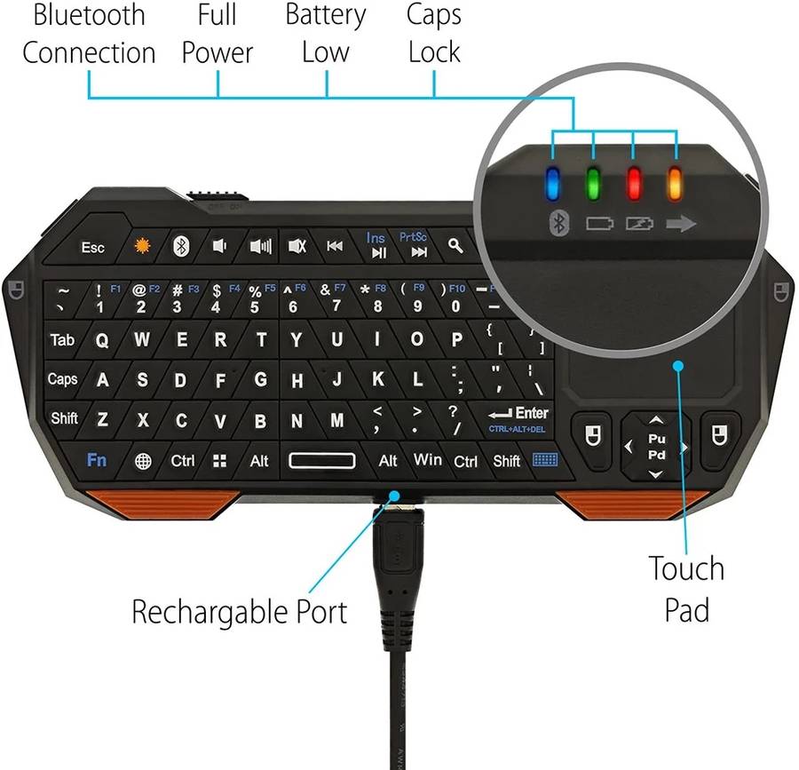 Innovative and compact QWERTY keyboard with touchpad that provides comfort combined with the freedom of wireless connectivity. Connect to all of your favorite devices with this wireless keyboard