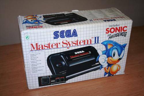 Sega Master System II In original packaging. Includes a build in copy of Sonic the hedgehog, power supply, one controller and RF cable. Great retro fun!