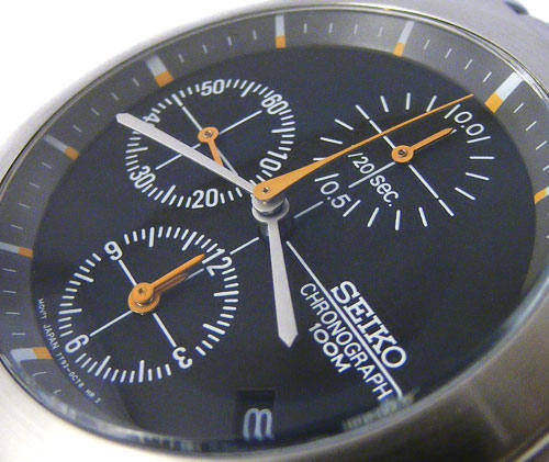 3 Subdials for chronograph functions. Stopwatch measures up to 12 hours in 1/20 second increments.