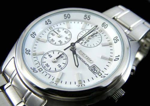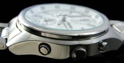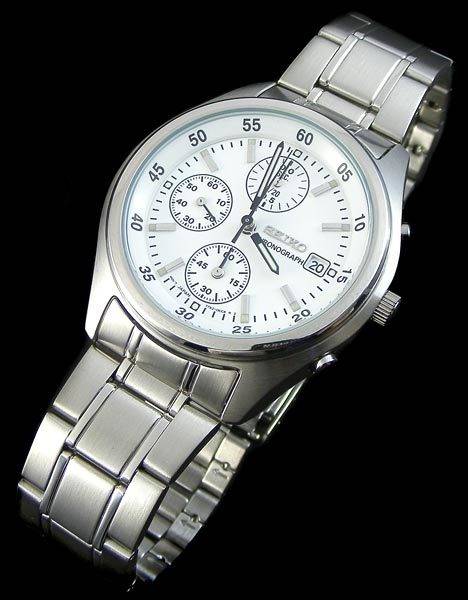 3 Subdials for chronograph functions. Stopwatch measures up to 60 minutes in 1/20 second increments. White dial with raised white edge and black increments below a scratch resistant Hardlex crystal glass. Lumibrite luminous material on black hands and polished steel markers for easy reading in low light conditions. ![]() Date window at 9 o'clock position. Solid brushed/polished stainless steel case with screw in case back. Water resistance-30m/3bar. Solid brushed stainless steel bracelet with polished accents and a dual push button deployment clasp. Bracelet Width - 18mm and to fit wrist of up to 210mm. Case measurement - 39mm (41mm incl. crown) x 10mm. Weight - 110gram. ![]() Original Seiko user manual included. Presented in SEIKO presentation case. 12 Months dealer warranty certificate included. ![]() 7 Days no questions asked money back guarantee. SEE BELOW HOW WE INTEND TO ENSURE THAT YOUR ONLINE SHOPPING EXPERIENCE WILL BE A PLEASURABLE AND RISK FREE ONE! |