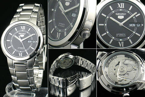 100% AUTHENTIC AND BRAND NEW MENS SEIKO WATCH, NEVER NEED BATTERY, DAY AND DATE CALENDAR, LUMINOUS HANDS AND MARKERS, SCRATCH RESISTANT HARDLEX CRYSTAL, SEE THRU BASE, ORIGINAL SEIKO OYSTER BRACELET, DEPLOYMENT CLASP WITH SECURE LOCK, WATER RESISTANT 30M, FULL SIZE, CASE 37MM, THICKNESS 11MM, NO BOX, NO MANUAL.