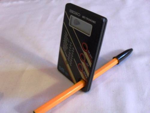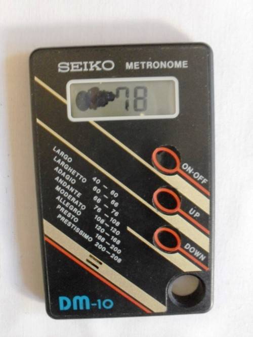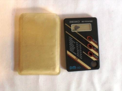 Seiko Metronome, model DM-10, electronic; small pocket-sized (size of a credit card). There is a blip on the LCD display, see pictures, which stays like that, but in perfect working condition.
