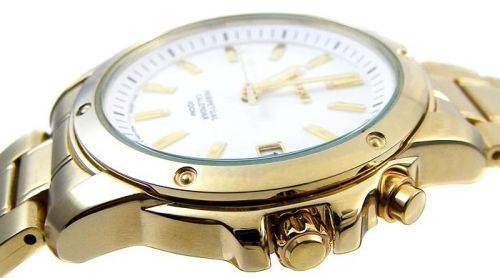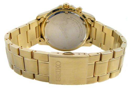 Solid stainless steel bracelet in a brushed gold toned finish with polished accents and a dual push button deployment clasp. Bracelet width - 20mm and to fit wrist of up to 200mm. Comes complete with SEIKO user manual and SEIKO presentation case. 12 Months dealer warranty certificate included. 7 Days no questions asked money back guarantee. See below for more info.