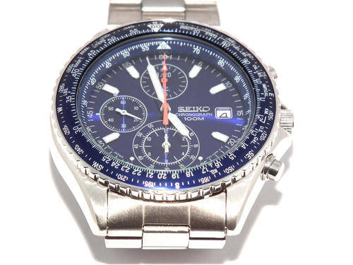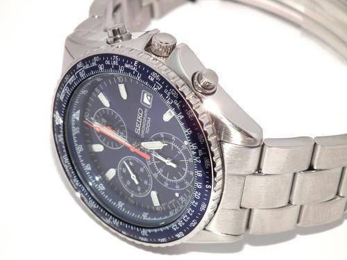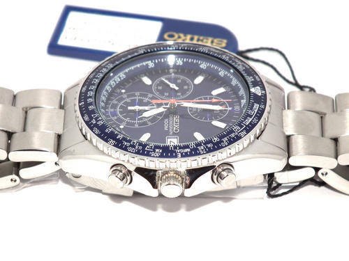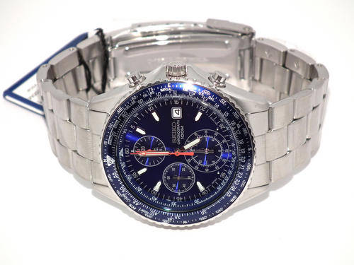AUTHENTIC AND BRAND NEW SEIKO MENS WATCH, PILOT CHRONOGRAPH SERIES, JAPAN QUARTZ CHRONOGRAPH MOVEMENT, FLIGHT SLIDE RULER, CALENDAR, 100M WR, HARDLEX CRYSTAL, LUMINUS HANDS AND MARKERS, ORIGINAL SEIKO OYSTER S/STEEL BRACELET, THREE FOLD CLASP WITH SECURE LOCK, BLUE DIAL, CASE 40MM, THICKESS 10MM, COMES IN AN AFTERMARKET WATCH BOX, MANUALS INCLUDED.