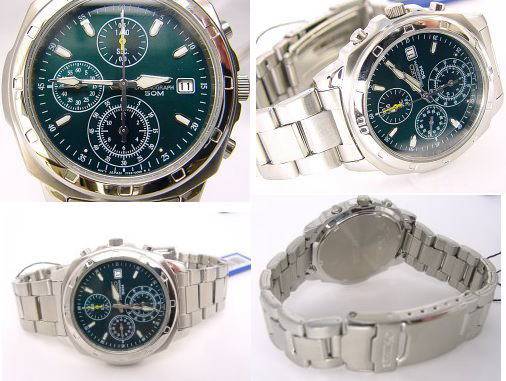 100% AUTHENTIC AND BRAND NEW SEIKO MEN CHRONOGRAPH PILOT AVIATION GREEN WATCH SND411P1.