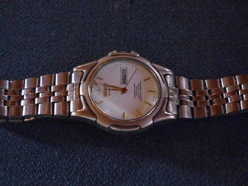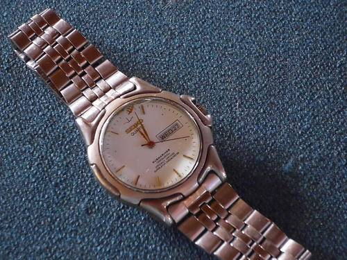 Seiko Quartz Submariner 300meter water resistant 1000 foot. Base metal, stainless steel back. VX29-700 SQ JAPAN J 118622. Watch is not running. The pieces inside the watch are broken off as seen in the picture. has a few scratches and marks.