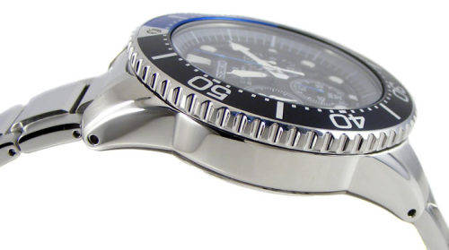 Brushed/polished stainless steel case with unidirectional rotating bezel for measuring of dive time etc.