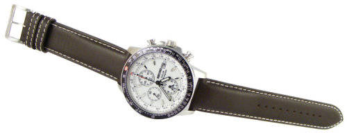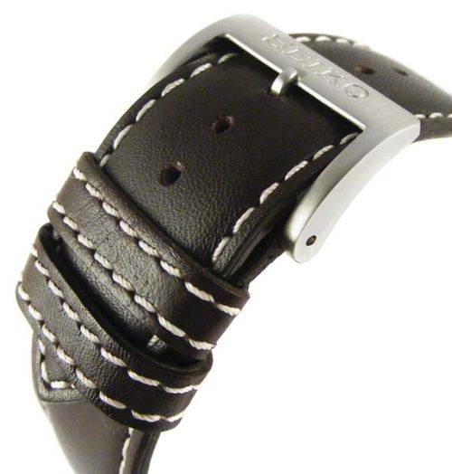 Genuine Seiko calf leather band in a brown finish with a brushed stainless buckle.