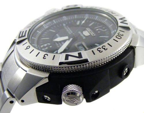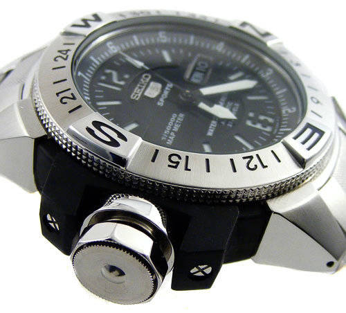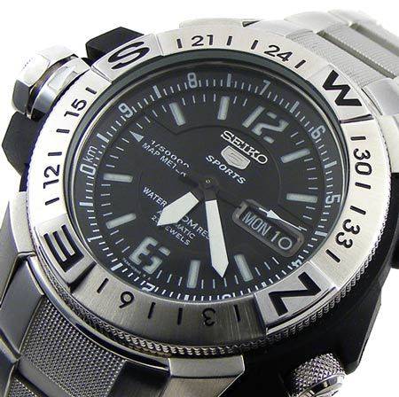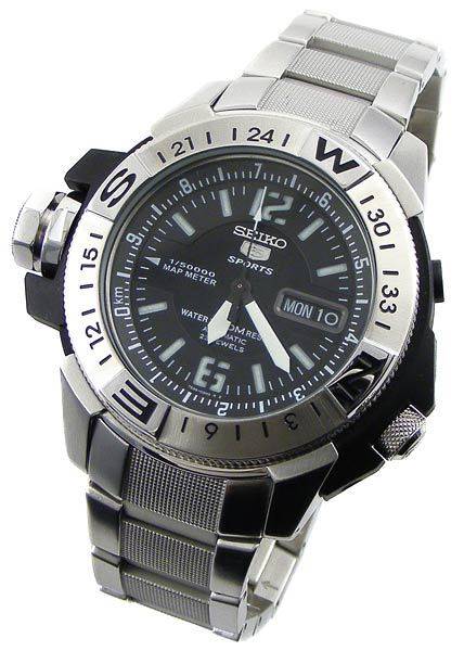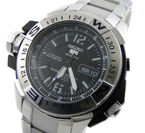 The toughest SEIKO automatic yet! With a removable composite outer casing to protect against excessive shock, this monster means business! Water resistant to 200m/20bar thanks to a screw in crown and screw in case back. The unidirectional stainless steel compass bezel is useful in aiding to determine direction and the map meter with internal register ring can actually determine the distance between two points on any scaled map or chart. But best of all, it never needs a battery replaced. Being a SEIKO 5, it also features a day and date display and all the characteristics that makes the SEIKO 5 one of the most collectible watches in the world.