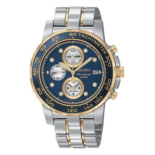 -Tachymeter bezel in blue with gold-tone accents is handy for measuring time against distance (e.g. to calibrate a speedometer) and is also a bold accent to the watch design.