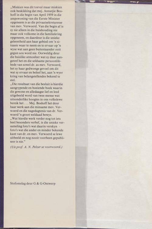 Verwering aan stofomslag en buiteblaaie, maar skoon en netjies binne-in. Hardeband. Uitgegee in 1974 deur Human & Rousseau. Volop foto's. 260 bladsye.