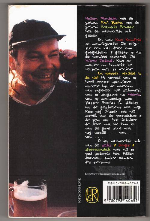 Nelson Mandela het dit gedoen. P.W. Botha het dit gedoen. Francois Pienaar het dit natuurlik ook gedoen . . .En toe volg Koos Kombuis se outobiografie, die een wat al meer as tien drukke beleef het. Dis die enigste een wat deur hom goedgekeur & getjap is as die naakte waarheid. Die Ware Jakob, Koos se manier om homself te versoen met sy verlede.En watter verlede is dit nie! Hy vertel van sy heel eerste openbare optrede (op die ouderdom van ongeveer vyf sekondes), van sy jeugjare as hedonis, van sy ontmoeting met Yasser Arafat (’n bladsy uit die geskiedenis wat nóg Koos nóg Yasser ooit wil oorhê), van die paradokse & die pyn, van hoe lekker die lewe nou vir hom is, van die goue jare wat nog voorlê . . . van . . . van . . .O ja, natuurlik ook van die seks & drugs & boeremusiek wat al sy pad gekruis het. Alles daarvan, sonder aansien des persoons. Die populêre Afrikaanse kultusfiguur Koos Kombuis het eintlik geen bekendstelling nodig nie. En al ken baie mense hom vandag as musikant, was hy reeds geruime tyd al 'n gevestigde skrywer voor hy in die middel jare tagtig 'n kitaar opgetel het. Uit sy pen (en soms onder die naam "Andre Letoit") het onder meer boeke soos Suidpunt-jazz, Somer II en Paradise Redecorated verskyn.