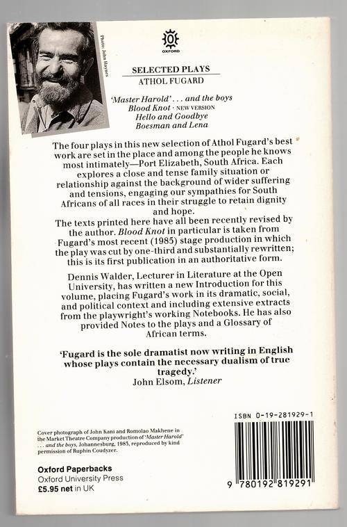 This new selection contains Master Harold and the Boys', Boesman and Lena', Hello and Goodbye', and a revised version of The Blood Knot'