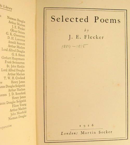 SELECTED POEMS BY J.E. FLECKER 1926 NO DUST COVER