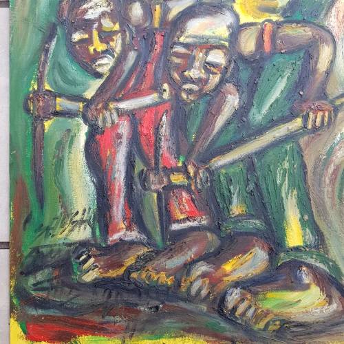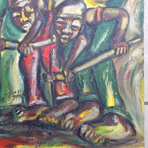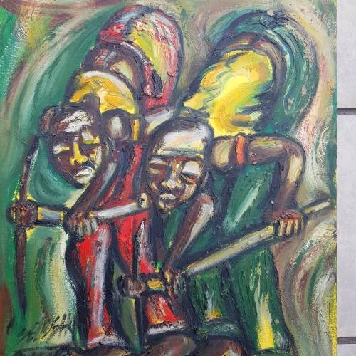 SELESHO  -" LABOUR" LARGE OIL PAINTING - 600mm(60cm) X 450mm(45cm)99% 2008 COLLECTIONSOLD