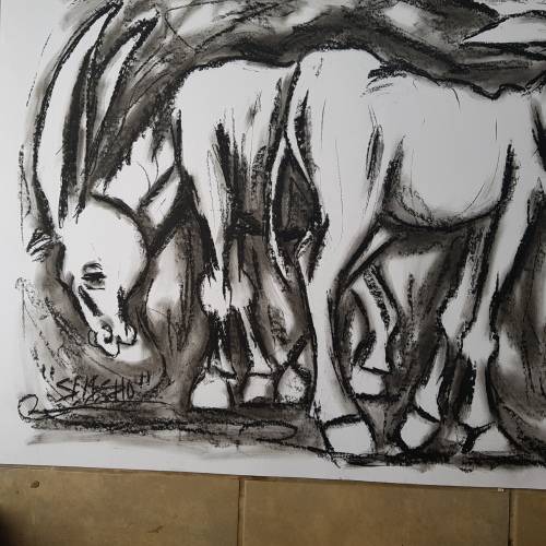 Macufe and other awards winner to flout his resume here;his works including sculptures adorn institutions like Oliewenhuis court yard,galleries and exhibitions throughout the World ,kindly google him to find out more.A real investment treasure.His multi media