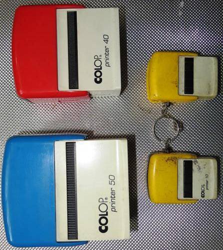 Units pictured are the exact ones that you're bidding on. Nothing more, nothing less. Take time to check through the pictures. I've tried to represent the products as honestly and completely as possible. Units well used but in working order. May require re-inking and you'll need to have your personalized plates put in. 1 x Paid by Customer; 1 Received, Not Checked; 2 x blanks. Don't buy if you don't know what it is or can do! Want other stuff from my listings? Check with me for combined/consolidated shipping; it'll save you.