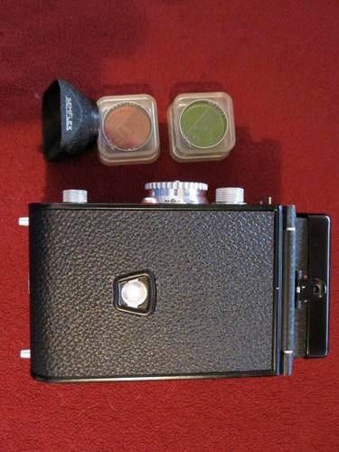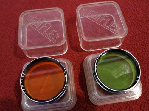 The camera comes with 1/2 case,Semflex lens hood and Semflex green and orange filters