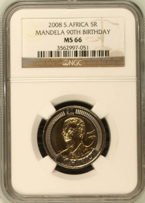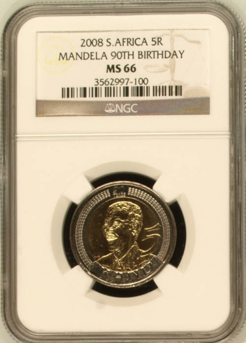 SEQUENCE No 051 to 100 - STRAIGHT from NGC - 50 x GRADED MS66 NGC - MANDELA 90th 2008 R5 COINS
