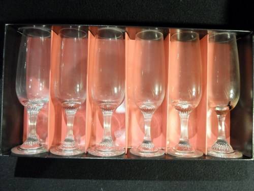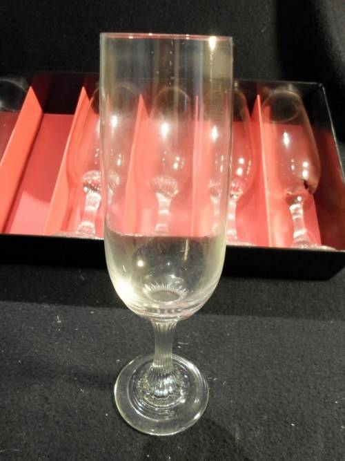 A Beautiful set of 6 Serenade Champagne Glasses, measuring at 18cm high and 4.5cm in diameter. The glasses are in good to very good condition and the box is in fairly good condition with some damage on the corners. Add this stunning set to your collection today. !