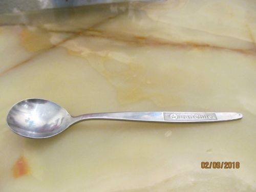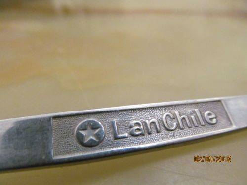 1)- LAN CHILE TEASPOON WHICH IS HANDLE STAMPED - "5/86 UPDATE STAINLESS" AND - "LAN CHILE" ON THE FRONT. TODAY LAN AIRLINES IS OFFICIALLY KNOWN AS LATAM AIRLINES. THE TEASPOON IS 13.6cm LENGTH.....2.9cm WIDTH OF BOWL.....0.8cm WIDTH OF HANDLE