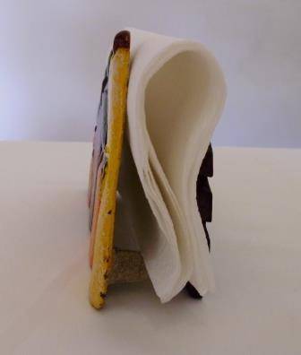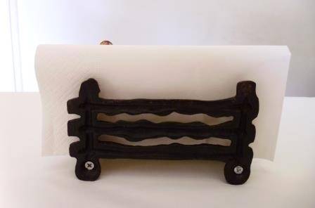 The stand is made of cast iron. It is 9cm high and 13.5cm across. It is in good condition.