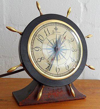 SESSIONS NAUTICAL SHIPS WHEEL CLOCK,EXCELLENT CONDITION, WORKING