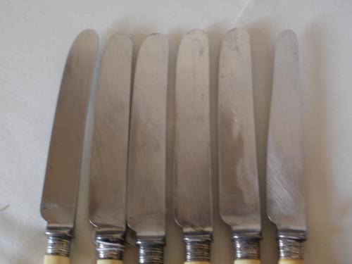 SET X6 SHEFFIELD, SILVER COLLAR WITH BONE HANDLES (IVORY) KNIFES