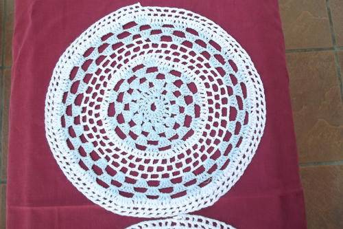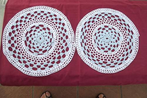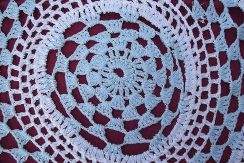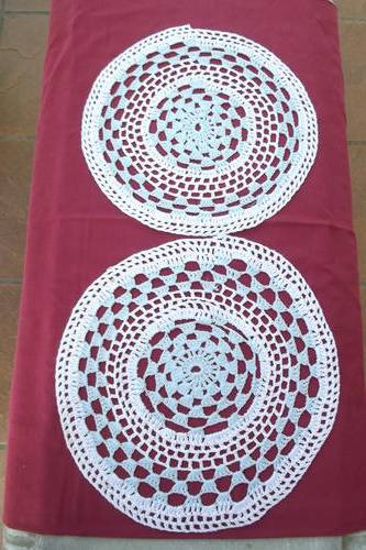 Set of 2 Baby Blue & White Crocheted Doilies - good condition - 33cm diameter and 31cm diameter