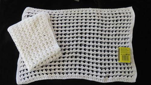 Set of 2 knitted lace mats/doilies - white wool. Good condition. 26 x 40 cm