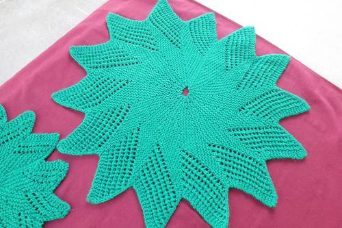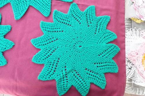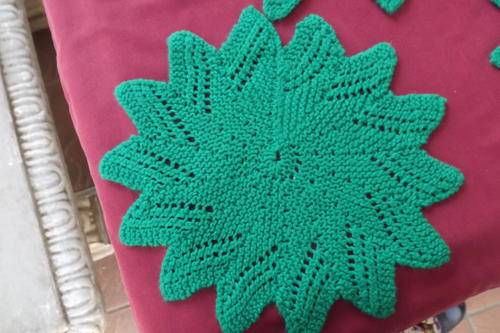 Set of 3 Bottle Green Knitted Doilies with 14 points - 48 and 2 x 30cm diameters