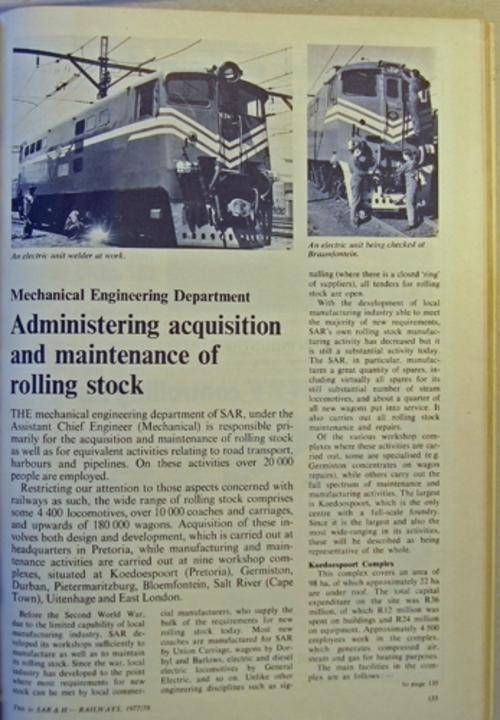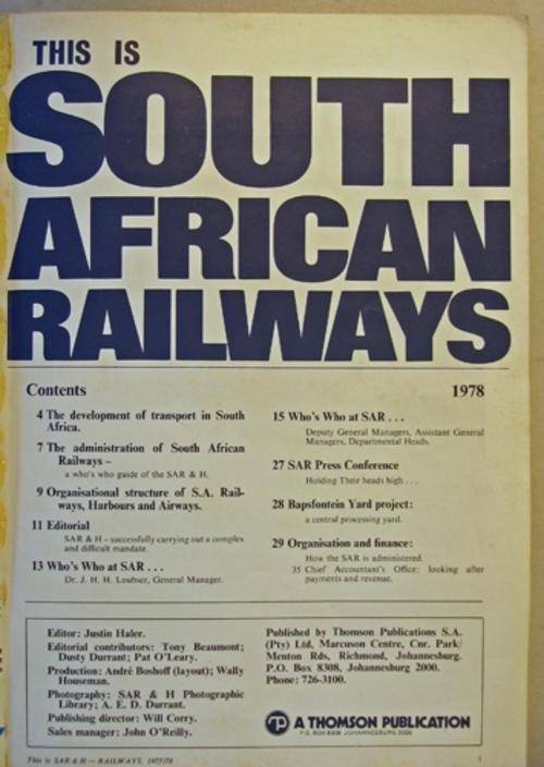 This offering consists of 3 A4 'Handbooks" viz. "This is SAR&H-Railways" (188pp), "This is SAR&H-Harbours & Pipelines" (80pp), & "This is SAR&H-Road Transport" (76pp). Published by Thomson Publications, 1978. The Handbooks cover historical, organisational, financial & commercial, traction force and rolling stock, engineering, training and maintenance etc. aspects of the once-great operation. Abundant photos, and numerous related adverts by suppliers to the then administration. In good condition. P&P counter-counter, with tracking R50.