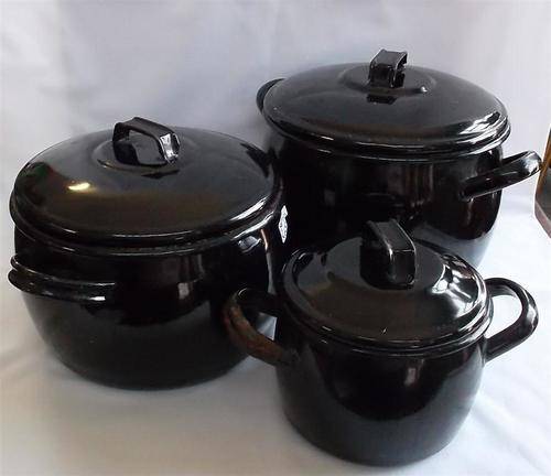 We have on offer this Beautiful Set of 3 Vintage Black Enamel Pots