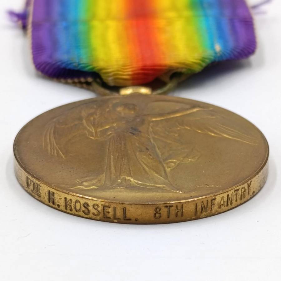 Set of 3 WW1 medals issued to Pte. H. Hossell, 8th Infantry