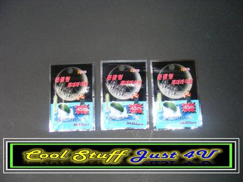 Each satchel contains 2 x fishing light sticks including a small tubular section to secure the stick to your fishing line. To activate the light stick; bend; snap & shake which provides approximately 40minutes of light on your tackle. Light stick has a diameter of 4.5mm & length of 37mm. Two different makes are reflected on this auction on the same specs & supply will be subject to stock & availability!