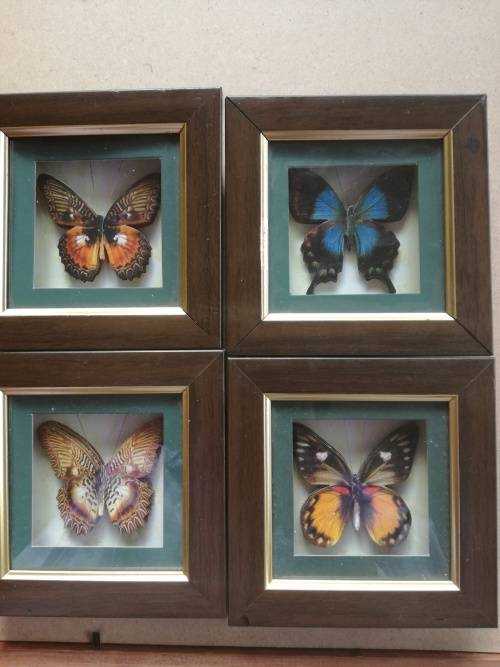 Set Of Beautiful Butterfly Collection Framed In Stunning Wooden Casing - Decorative Wall Art