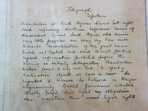 Set of 4 Pre Boer war telegram book counterfoils sent by Sir Joseph Robinson to various people
