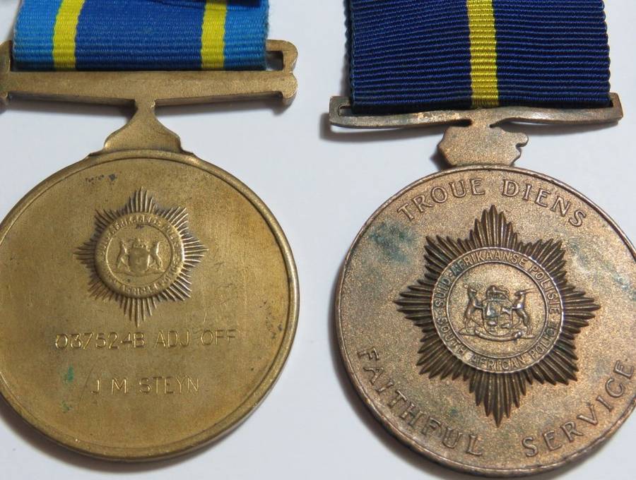 Set of 4 SA Police medals issued to sergeant J.M Steyn