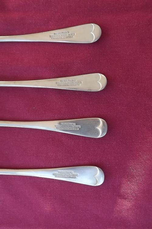 Set of 4 Sipelia Nickel Silver Dessert Spoons from Sheffield England - good condition