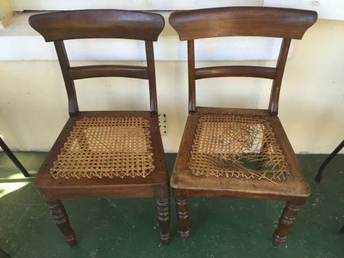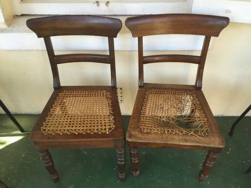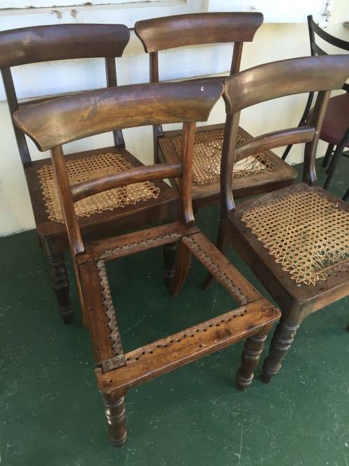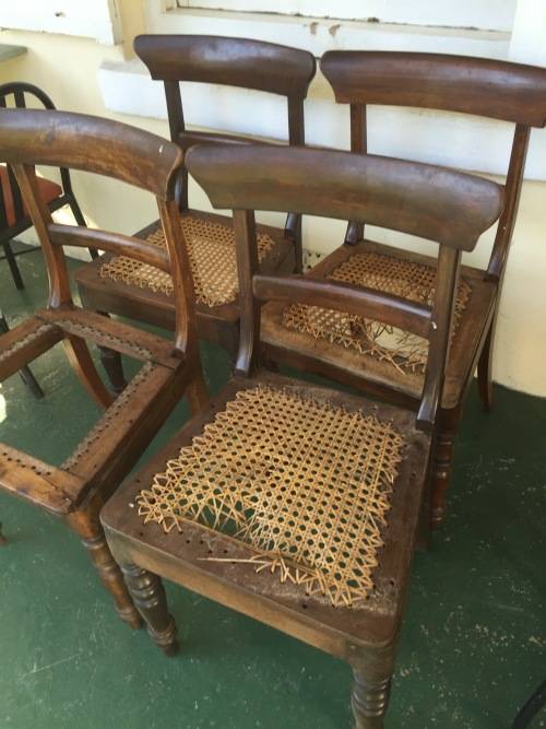 Set of 4 Stinkwood Chairs. Condition as per pics, need spme tlc. Bid per chair to take all 4