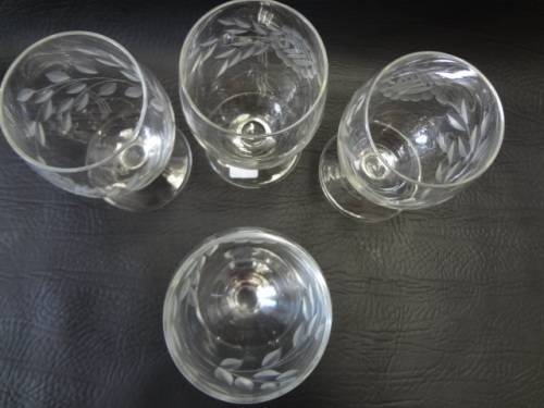 Set of 4 Vintage Etched Wine Glasses with 1 extra 11 cm - as per photo