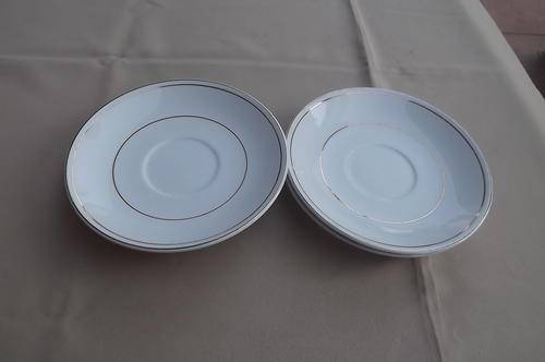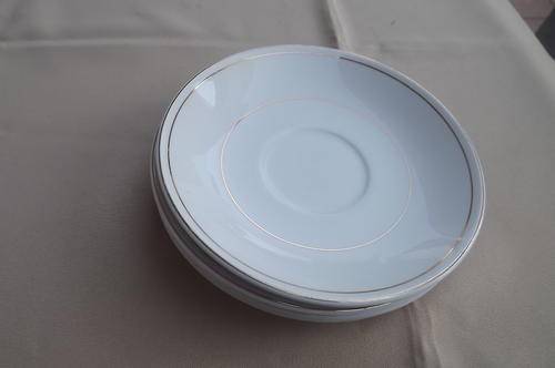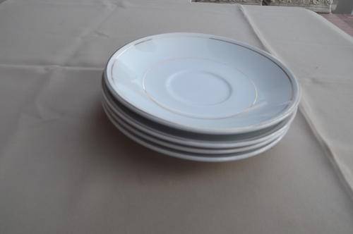 Set of 4 white porcelain saucers with gilded rims - used condition. By Barker Bros England.