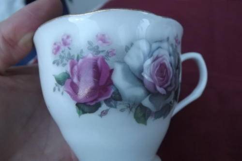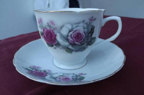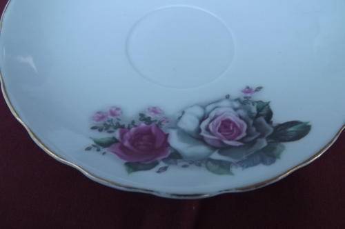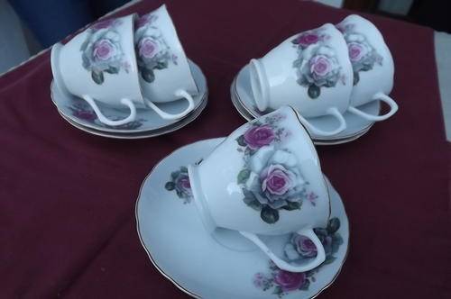 Set of 5 Cups & Saucers with Gilded Rims - Dainty - made in China - good condition