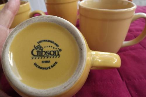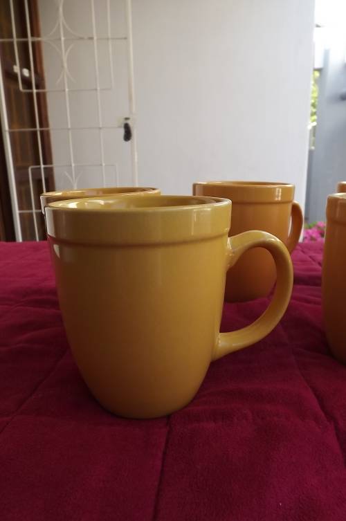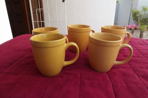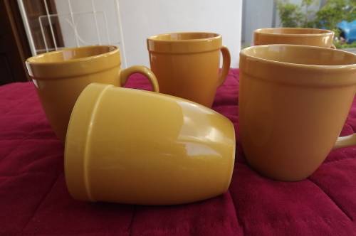 Set of 5 large mustard colour coffee mugs by GIBSON stone ware.Used but in good condition