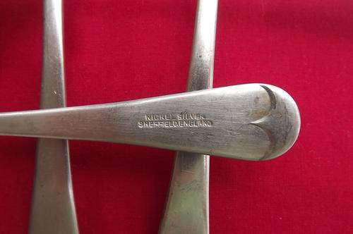 Set of 5 Nickel Silver Serving Spoons from Sheffield England