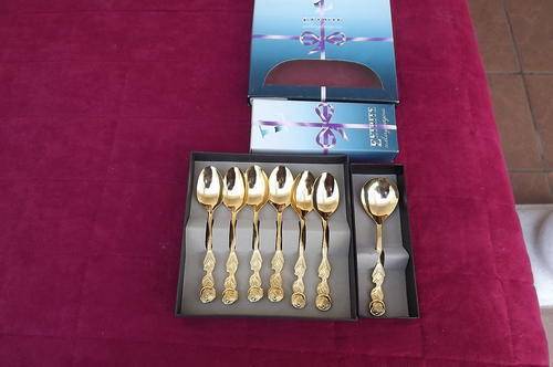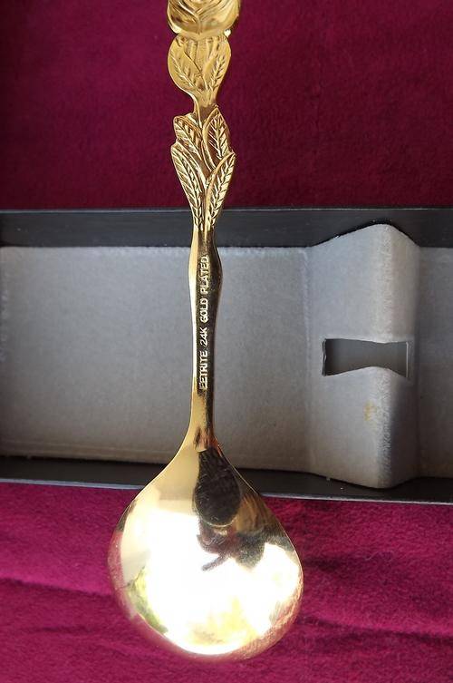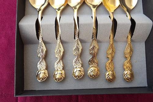 Set of 6 24K Gold Plated Rose Design Teaspoons & 1 Sugarspoon by Eetrite-new condition - never used