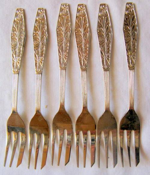 SET OF 6 CAKE FORKS : NOVALUX PLATE : MADE IN HOLLAND - ROYAL DUTCH SILVERWORKS