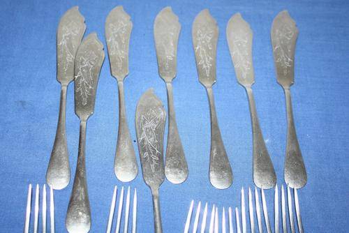 Set of 6 Fish Knives and Forks marked Gem Silver