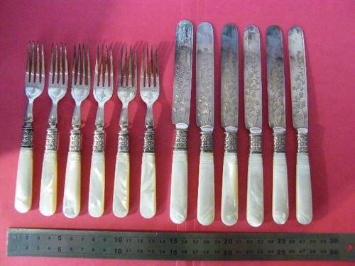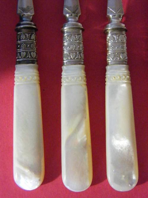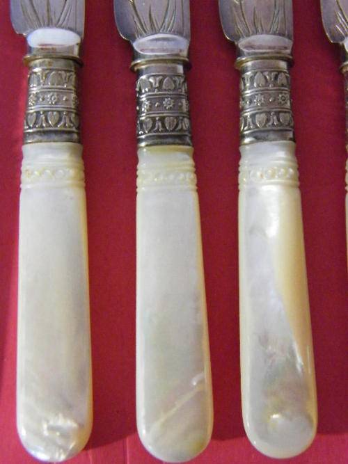 Set of 6 Joseph Rodgers silver-plated knives and forks with mother-of-pearl handles in original box