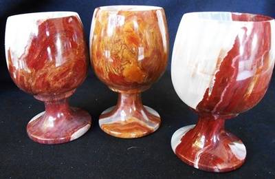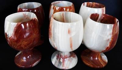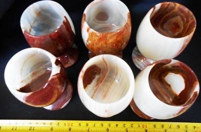 SET OF 6 RARE ONYX MARBLE NATURAL STONE CUPS GOBLETS COLLECTABLE